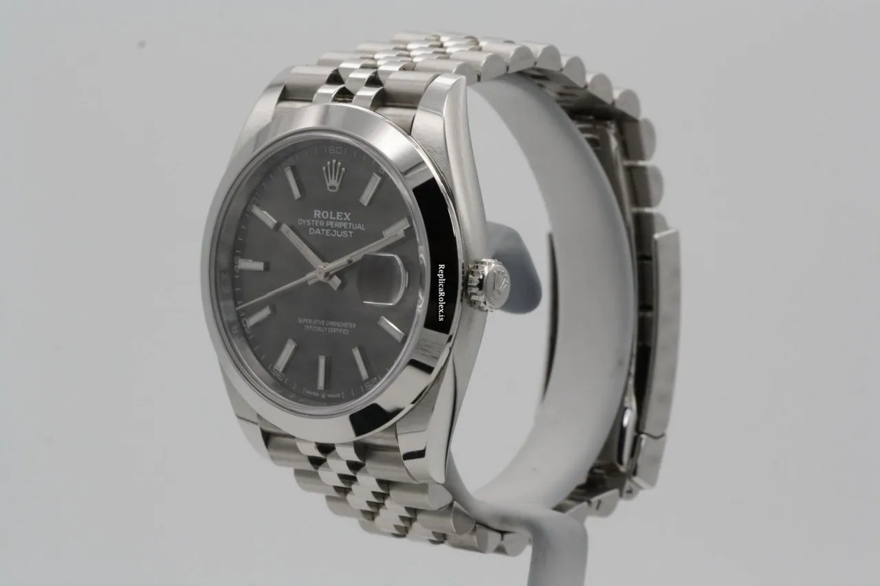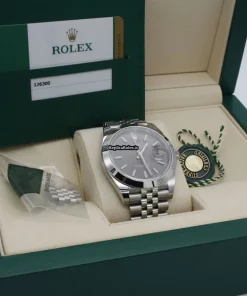 Tags: 126300, 31 jewels, 41mm case diameter, 70h power reserve, automatic movement, caliber 3235, fold clasp, grey dial, mens watches, no numerals, sapphire crystal, steel bezel material, steel bracelet color, steel bracelet material, steel case material, steel clasp material, unisex watches