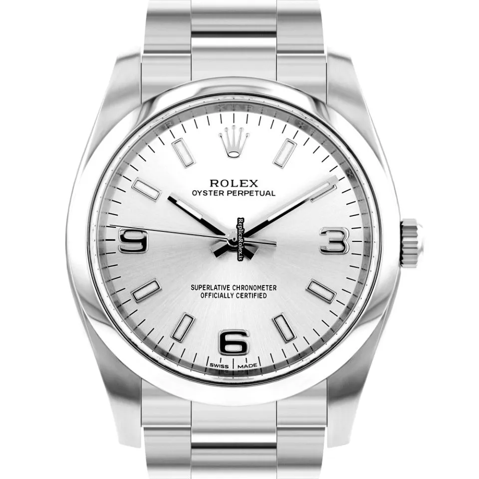Tags: 10m atm, 114200, 31 jewels, 34mm case diameter, 48h power reserve, arabic numerals, automatic movement, caliber 3130, fold clasp, mens watches, sapphire crystal, silver dial, steel bezel material, steel bracelet color, steel bracelet material, steel case material, steel clasp material, unisex watches