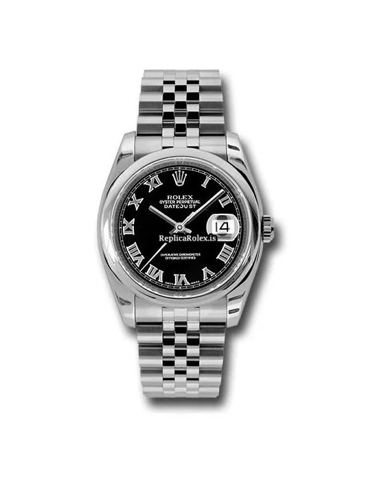 Tags: 10m atm, 116200, 31 jewels, 36mm case diameter, 48h power reserve, automatic movement, black dial, caliber 3135, fold clasp, mens watches, roman numerals, sapphire crystal, steel bezel material, steel bracelet color, steel bracelet material, steel case material, steel clasp material, unisex watches