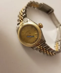 Tags: 12mm buckle width, 138mm, 13mm lug width, 25mm case diameter, 29 jewels, 3mm bracelet thickness, 5m atm, 67193, 86mm/52mm bracelet length, 98mm, automatic movement, caliber 2130, fold clasp, gold dial, gold/steel bracelet color, gold/steel bracelet material, gold/steel case material, no numerals, sapphire crystal, steel clasp material, womens watches, yellow gold bezel material