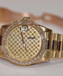 Tags: 10m atm, 31mm case diameter, automatic movement, fold clasp, gold bracelet color, gold dial, no numerals, sapphire crystal, self winding automatic, womens watches, yellow gold bezel material, yellow gold bracelet material, yellow gold case material, yellow gold clasp material