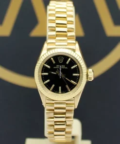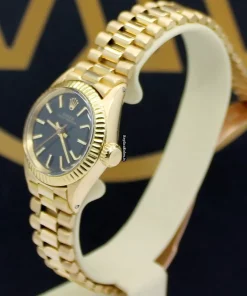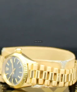 Tags: 13mm lug width, 26mm case diameter, 28 jewels, 6618, automatic movement, black dial, caliber 2030, fold clasp, gold bracelet color, no numerals, plexiglass crystal, womens watches, yellow gold bezel material, yellow gold bracelet material, yellow gold case material, yellow gold clasp material