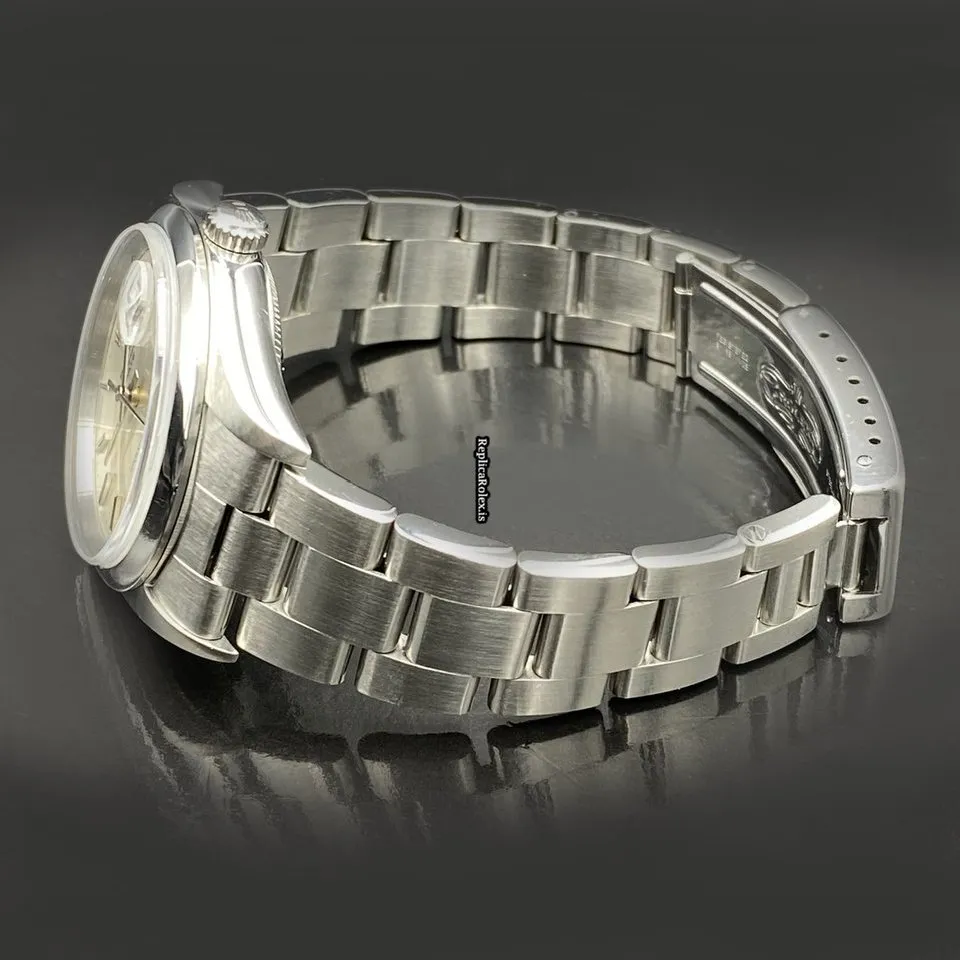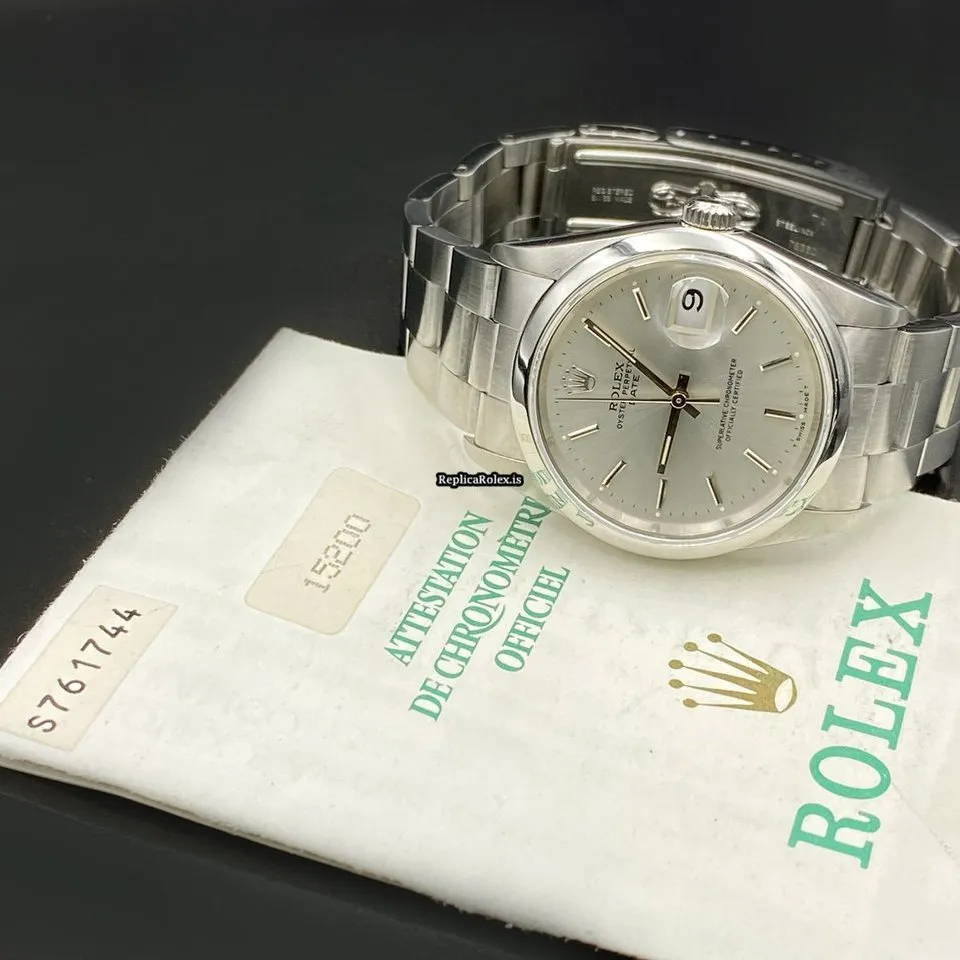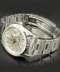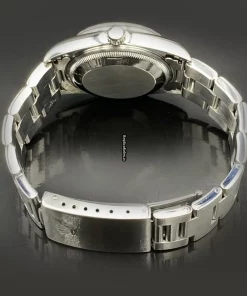 Tags: 10m atm, 15200, 31 jewels, 34mm case diameter, 48h power reserve, automatic movement, caliber 3135, fold clasp, no numerals, sapphire crystal, silver dial, steel bezel material, steel bracelet color, steel bracelet material, steel case material, steel clasp material, womens watches