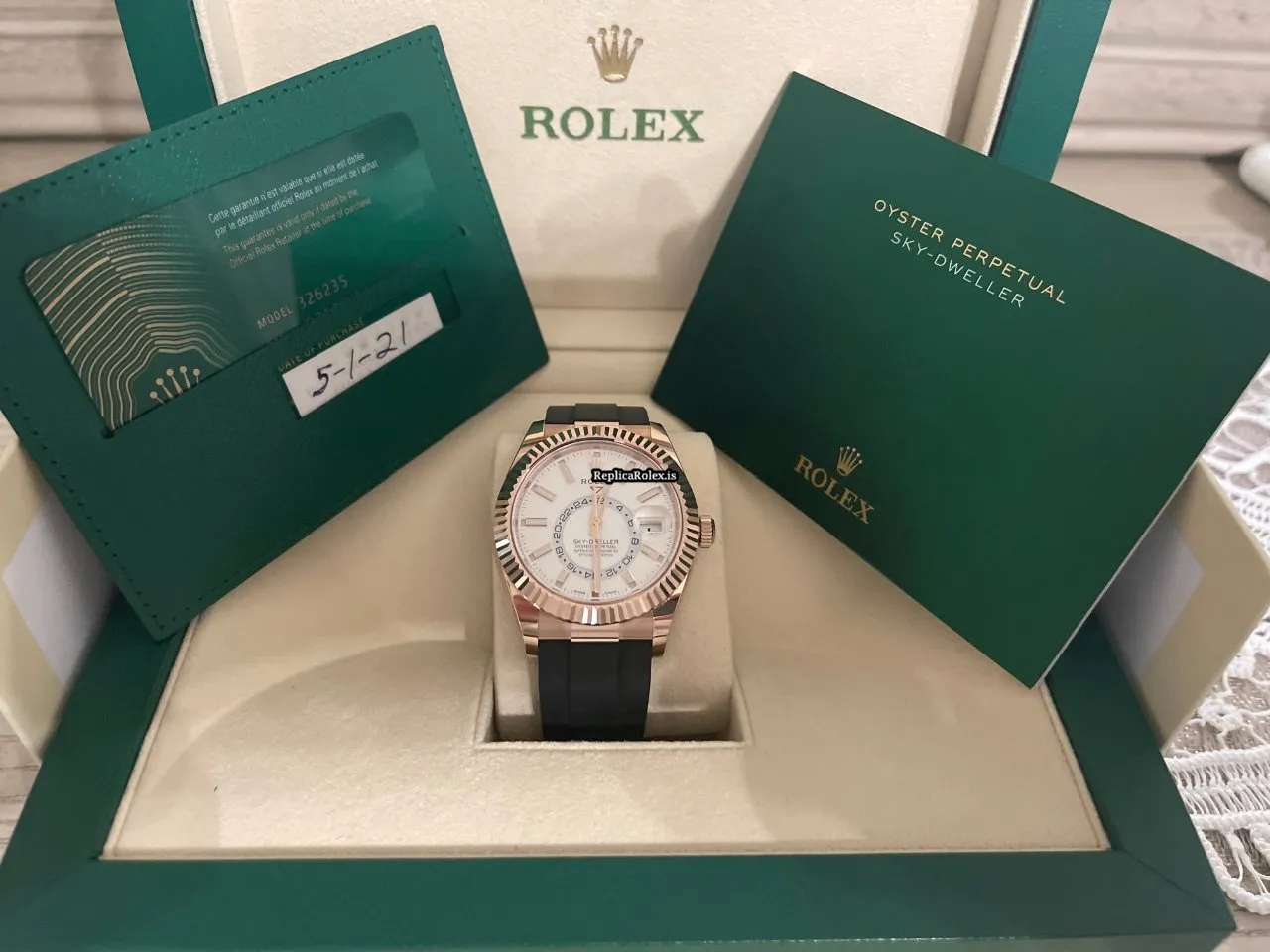 Quality Copies Rolex Sky-dweller 326235 Caliber 9001 Automatic Movement 42mm Rose Gold Case Mens/unisex Watch