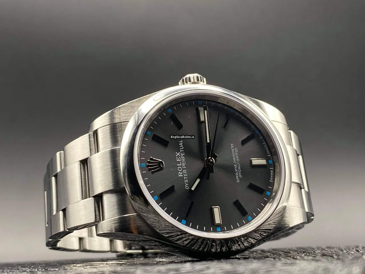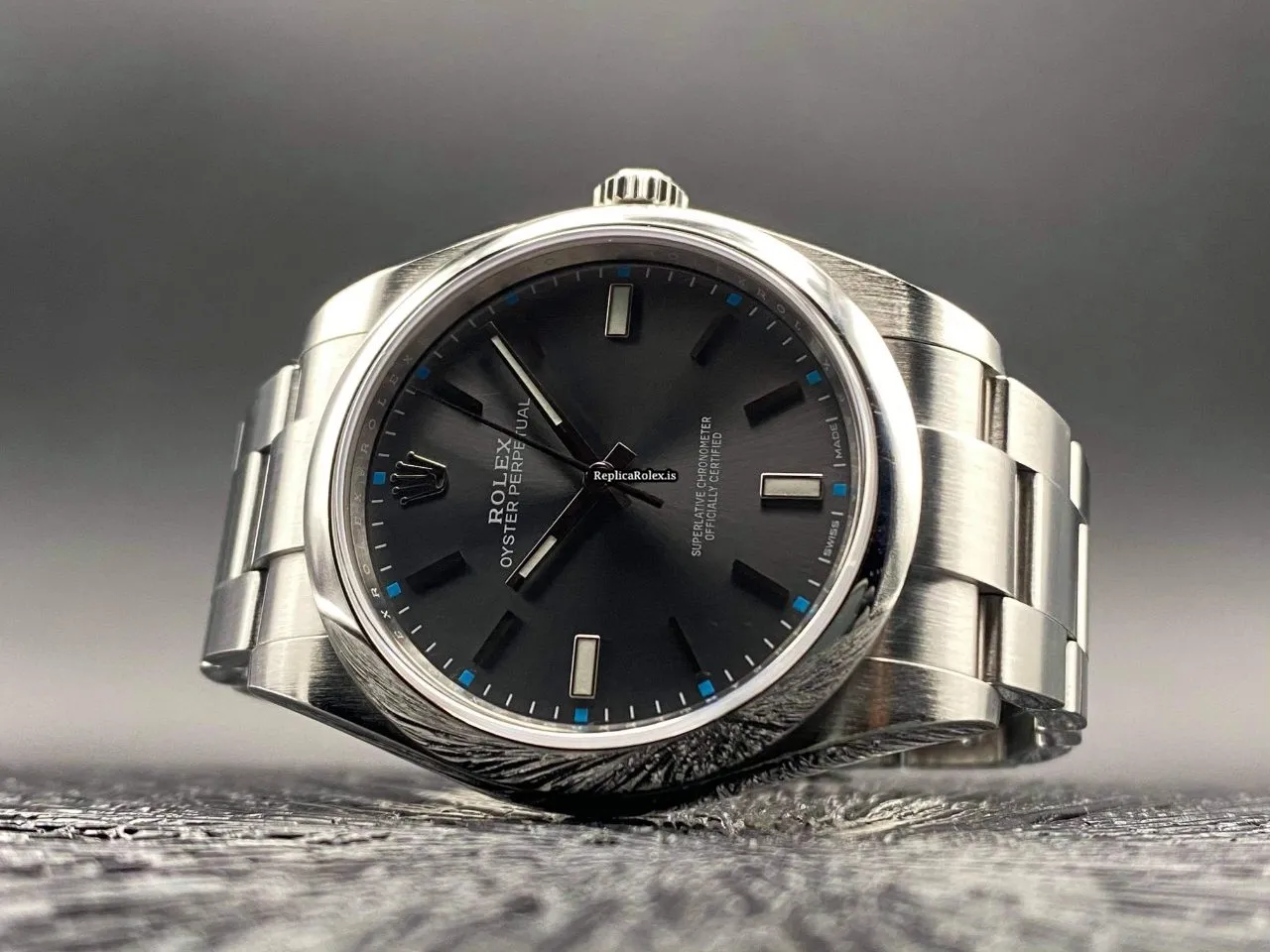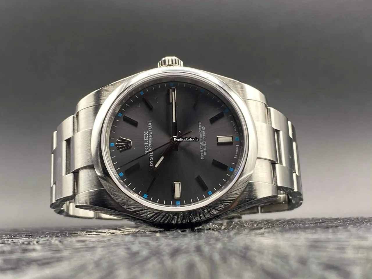Tags: 10m atm, 114300, 31 jewels, 39mm case diameter, 48h power reserve, automatic movement, caliber 3132, fold clasp, grey dial, mens watches, no numerals, sapphire crystal, steel bezel material, steel bracelet color, steel bracelet material, steel case material, steel clasp material, unisex watches
