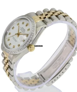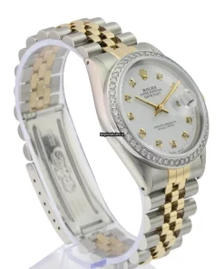 Tags: 10m atm, 16233, 27 jewels, 36mm case diameter, 42h power reserve, automatic movement, caliber 3035, fold clasp, gold/steel bracelet color, gold/steel bracelet material, gold/steel case material, mens watches, no numerals, plexiglass crystal, steel clasp material, unisex watches, white dial, yellow gold bezel material