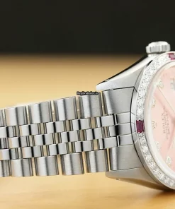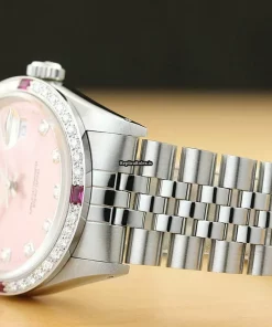 Tags: 16014, 191mm bracelet length, 20mm lug width, 27 jewels, 36mm case diameter, automatic movement, caliber 3035, mens watches, pink dial, sapphire crystal, steel bracelet color, steel bracelet material, steel case material, unisex watches, white gold bezel material