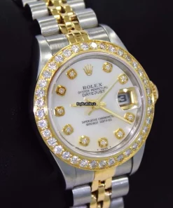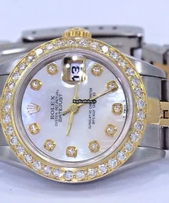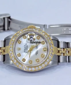 Tags: 26mm case diameter, 69173, automatic movement, fold clasp, gold/steel bezel material, gold/steel bracelet material, mother of pearl dial, sapphire crystal, steel case material, womens watches