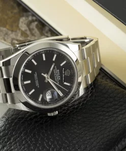 Tags: 11.5mm, 126300, 190mm bracelet length, 21mm lug width, 41mm case diameter, automatic movement, black dial, caliber 3235, fold clasp, mens watches, sapphire crystal, steel bracelet material, steel case material, unisex watches
