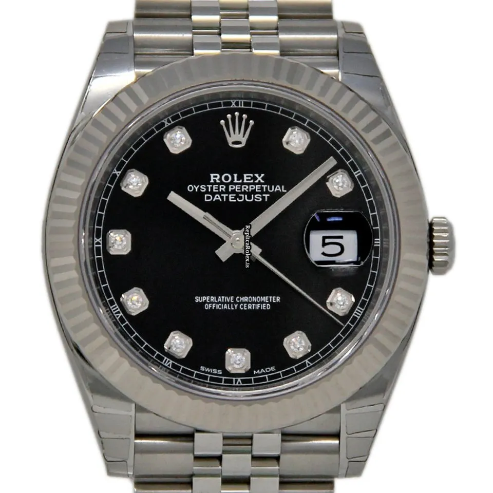 Tags: 10m atm, 126334, 41mm case diameter, automatic movement, black dial, caliber 3235, fold clasp, mens watches, sapphire crystal, silver bracelet color, steel bracelet material, steel case material, unisex watches, white gold bezel material