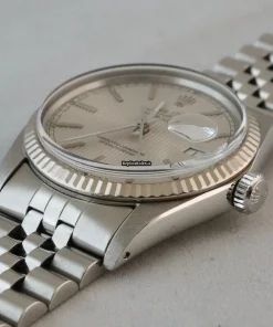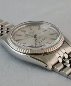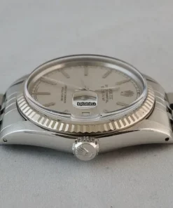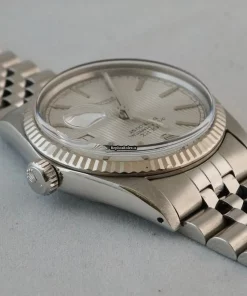 Tags: 10m atm, 16014, 27 jewels, 36mm case diameter, 42h power reserve, automatic movement, caliber 3035, fold clasp, mens watches, no numerals, plexiglass crystal, silver dial, steel bracelet color, steel bracelet material, steel case material, steel clasp material, unisex watches, white gold bezel material