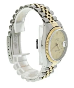 Tags: 16013, 36mm case diameter, automatic movement, champagne dial, fold clasp, mens watches, steel bracelet color, steel bracelet material, steel case material, unisex watches, yellow gold bezel material
