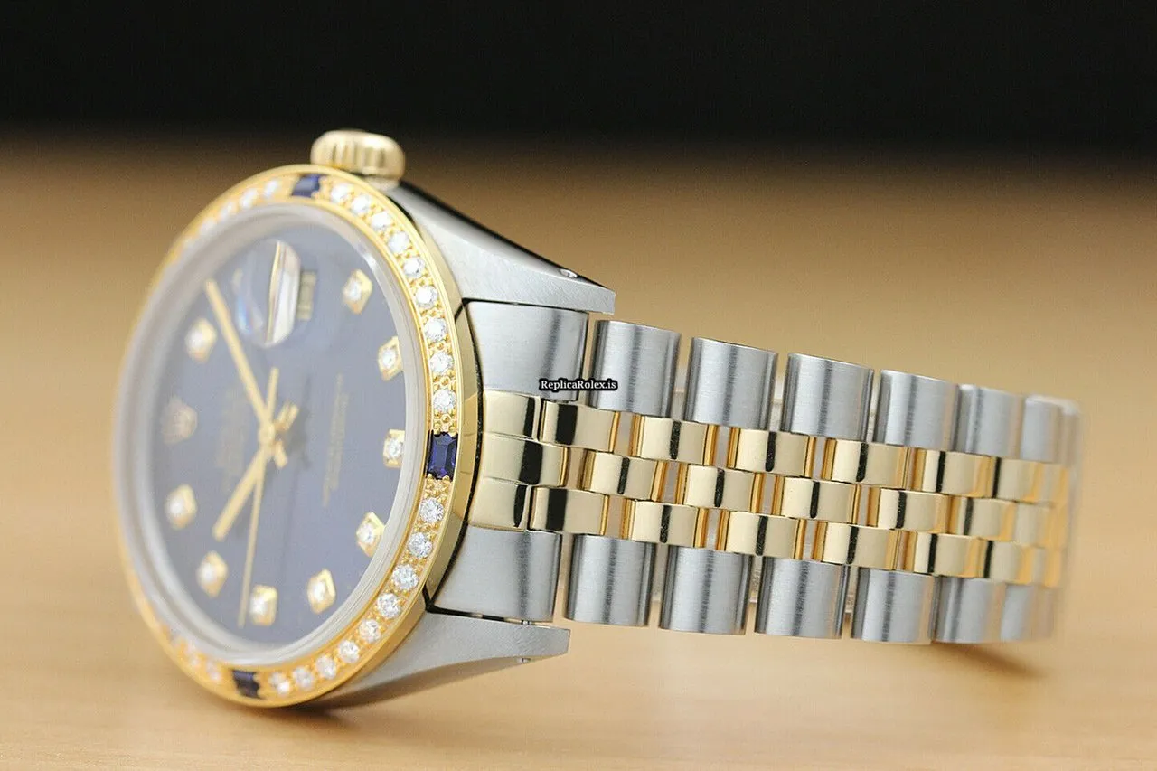 Tags: 16013, 191mm bracelet length, 20mm lug width, 27 jewels, 36mm case diameter, automatic movement, blue dial, caliber 3035, gold/steel bracelet color, gold/steel bracelet material, mens watches, sapphire crystal, steel case material, unisex watches, yellow gold bezel material