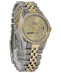Tags: 10m atm, 16013, 200mm bracelet length, 36mm case diameter, automatic movement, champagne dial, gold/steel bracelet material, mens watches, plastic crystal, silver bracelet color, steel case material, unisex watches