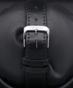 Tags: 34mm case diameter, 5552, leather bracelet material, no numerals, silver dial, steel case material