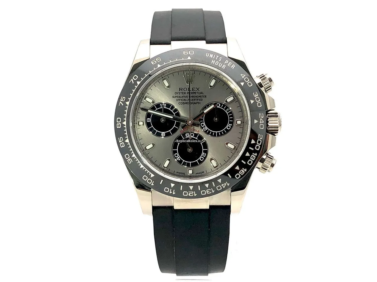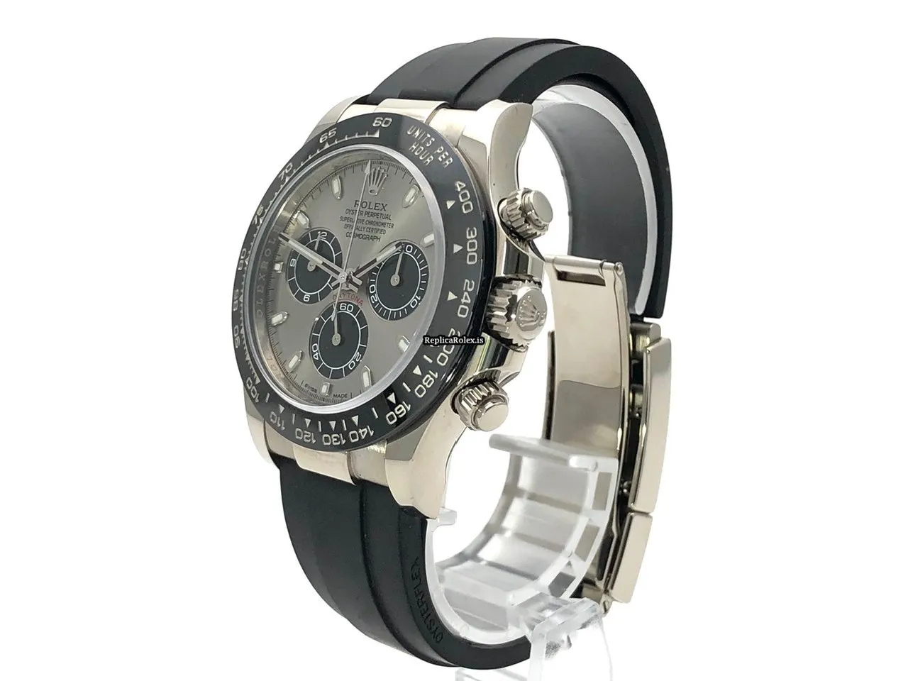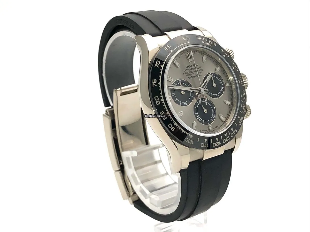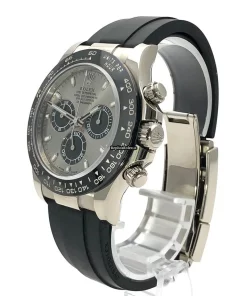 Tags: 10m atm, 116519ln, 12mm, 40mm case diameter, 44 jewels, 72h power reserve, automatic movement, black bracelet color, caliber 4130, fold clasp, grey dial, mens watches, no numerals, rubber bracelet material, sapphire crystal, unisex watches, white gold bezel material, white gold case material, white gold clasp material