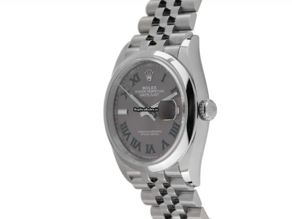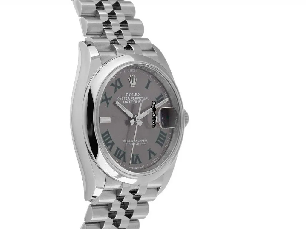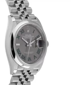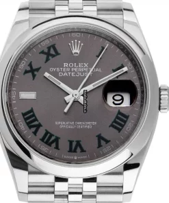 Tags: 10m atm, 11.6mm, 126200, 36mm case diameter, 70h power reserve, automatic movement, caliber 3235, fold clasp, grey dial, mens watches, roman numerals, sapphire crystal, steel bezel material, steel bracelet color, steel bracelet material, steel case material, unisex watches
