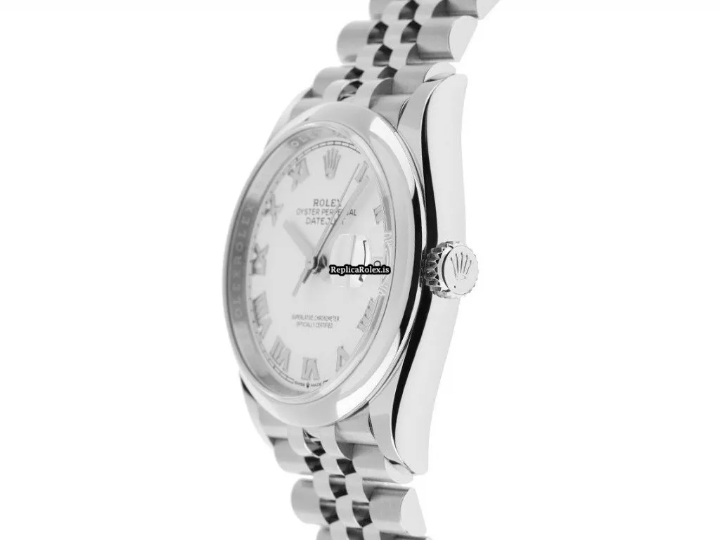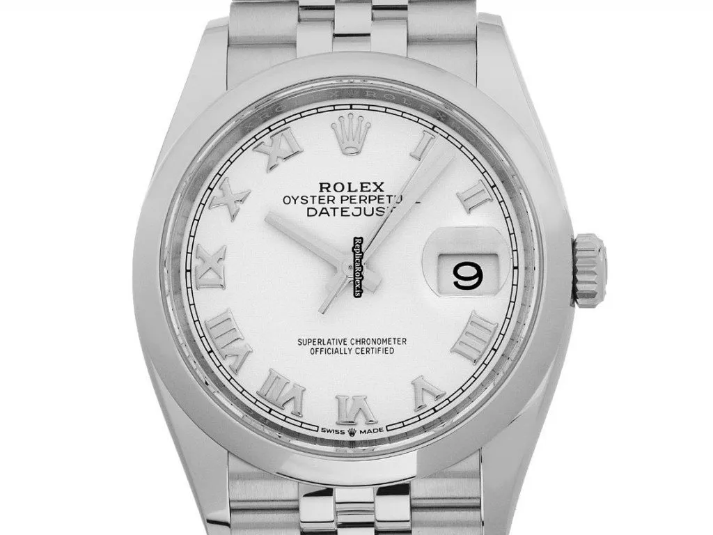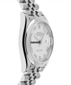 Tags: 10m atm, 11.6mm, 126200, 36mm case diameter, 70h power reserve, automatic movement, caliber 3235, fold clasp, mens watches, roman numerals, sapphire crystal, steel bezel material, steel bracelet color, steel bracelet material, steel case material, unisex watches, white dial