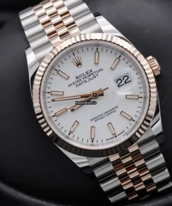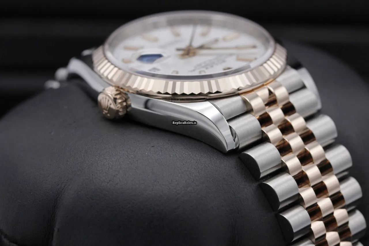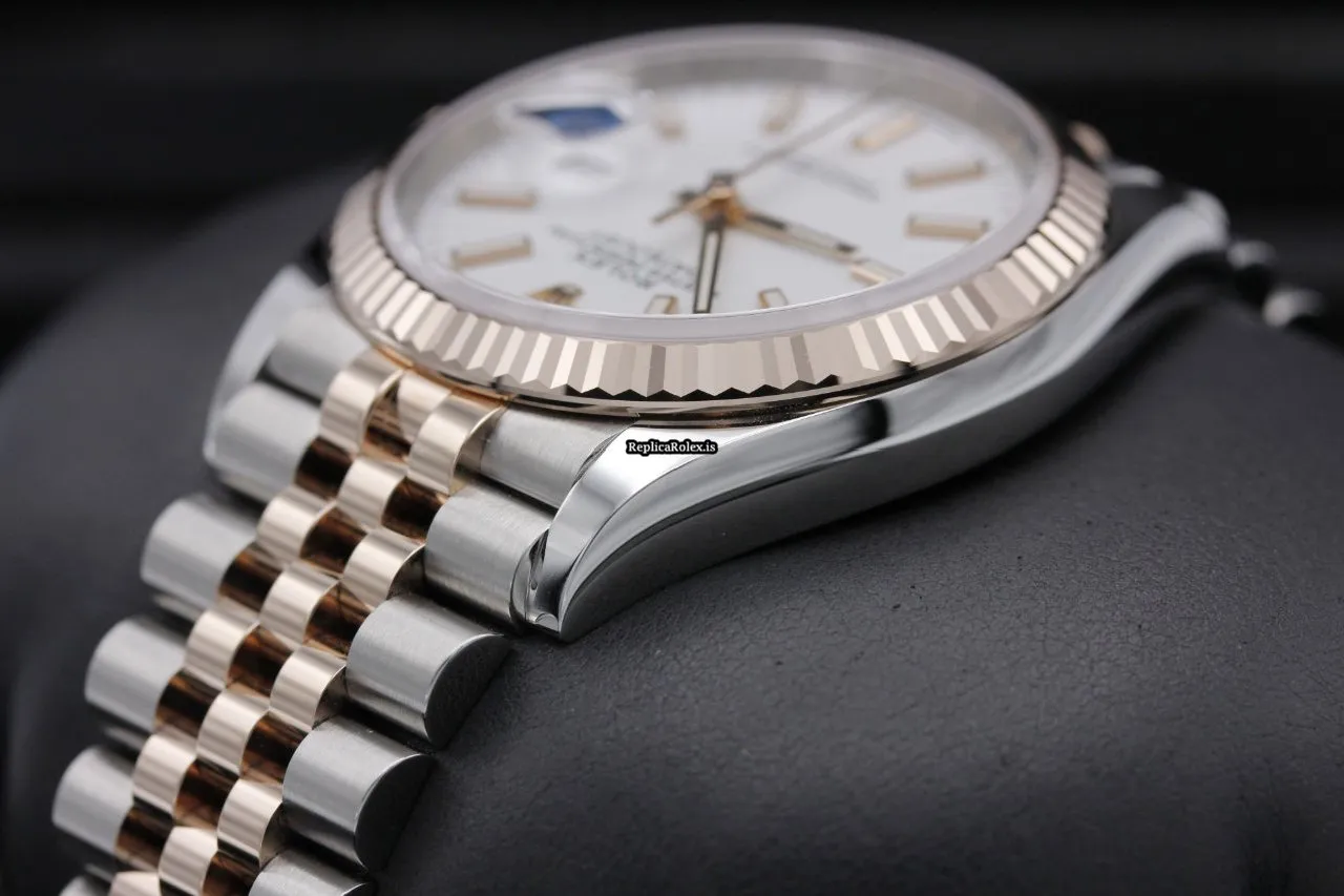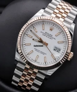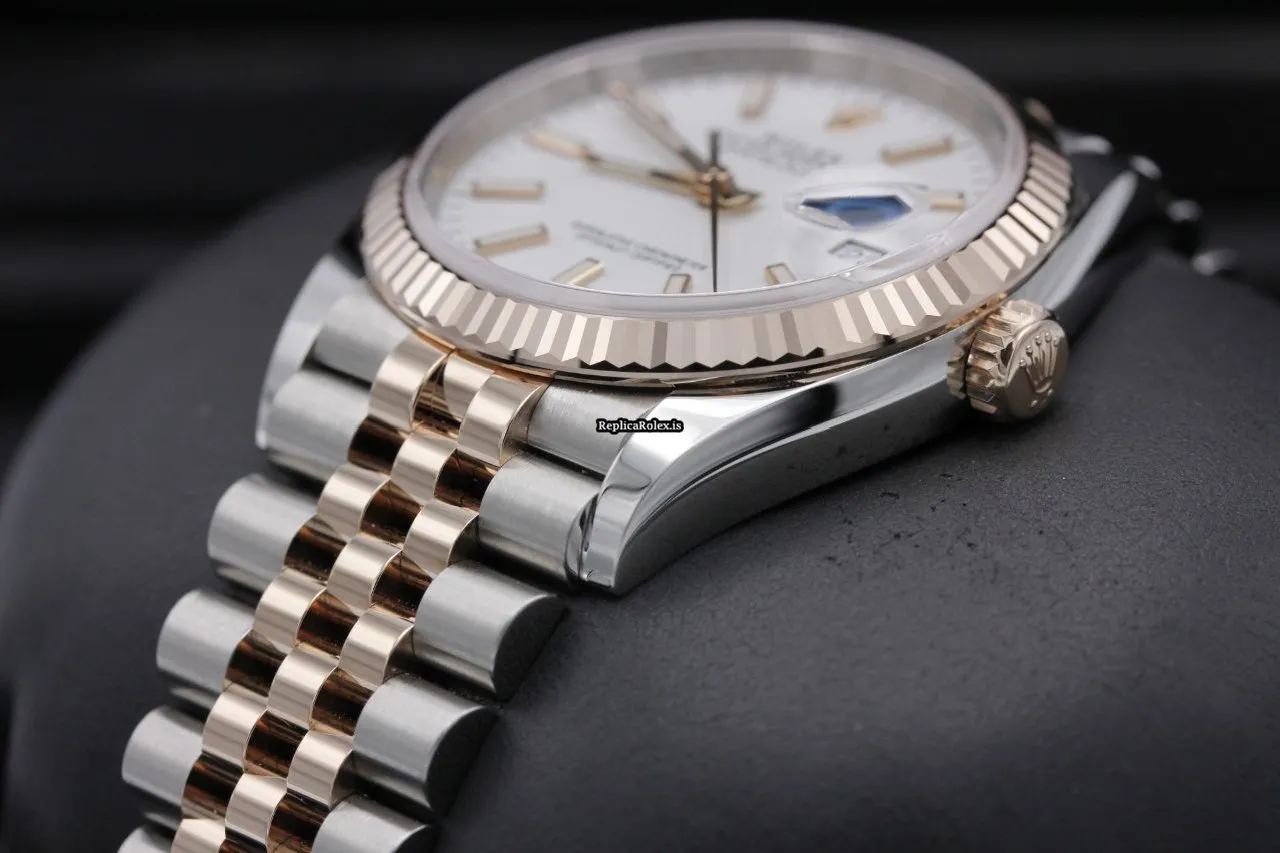 Tags: 126231, 36mm case diameter, gold/steel case material, no numerals, white dial