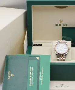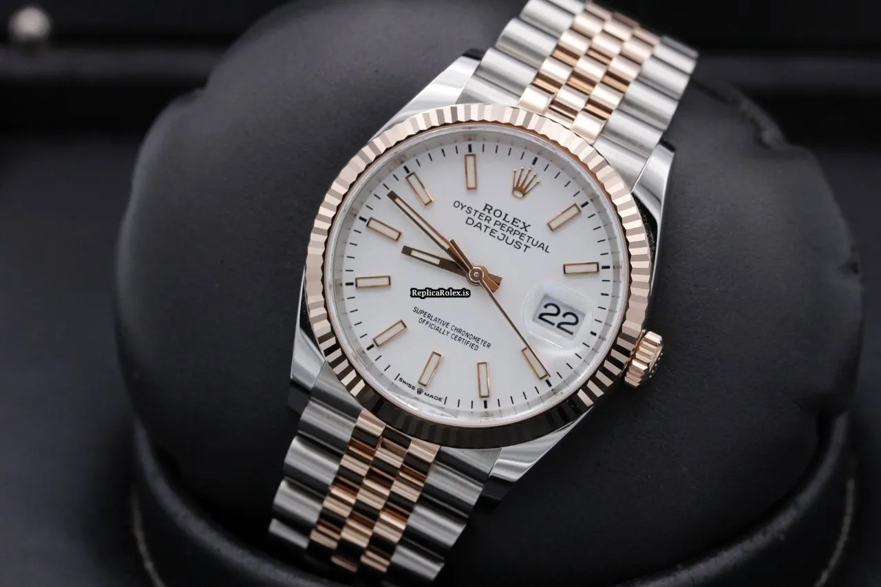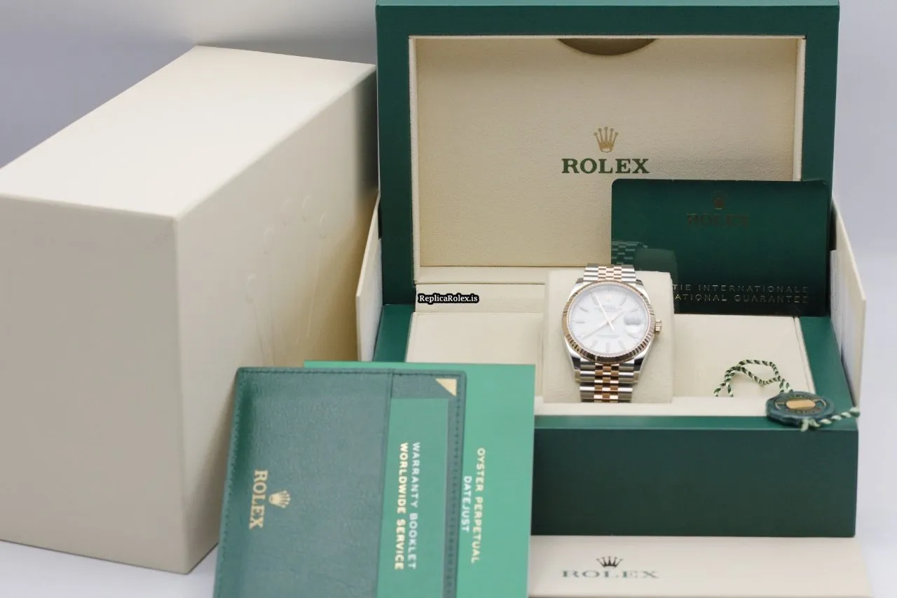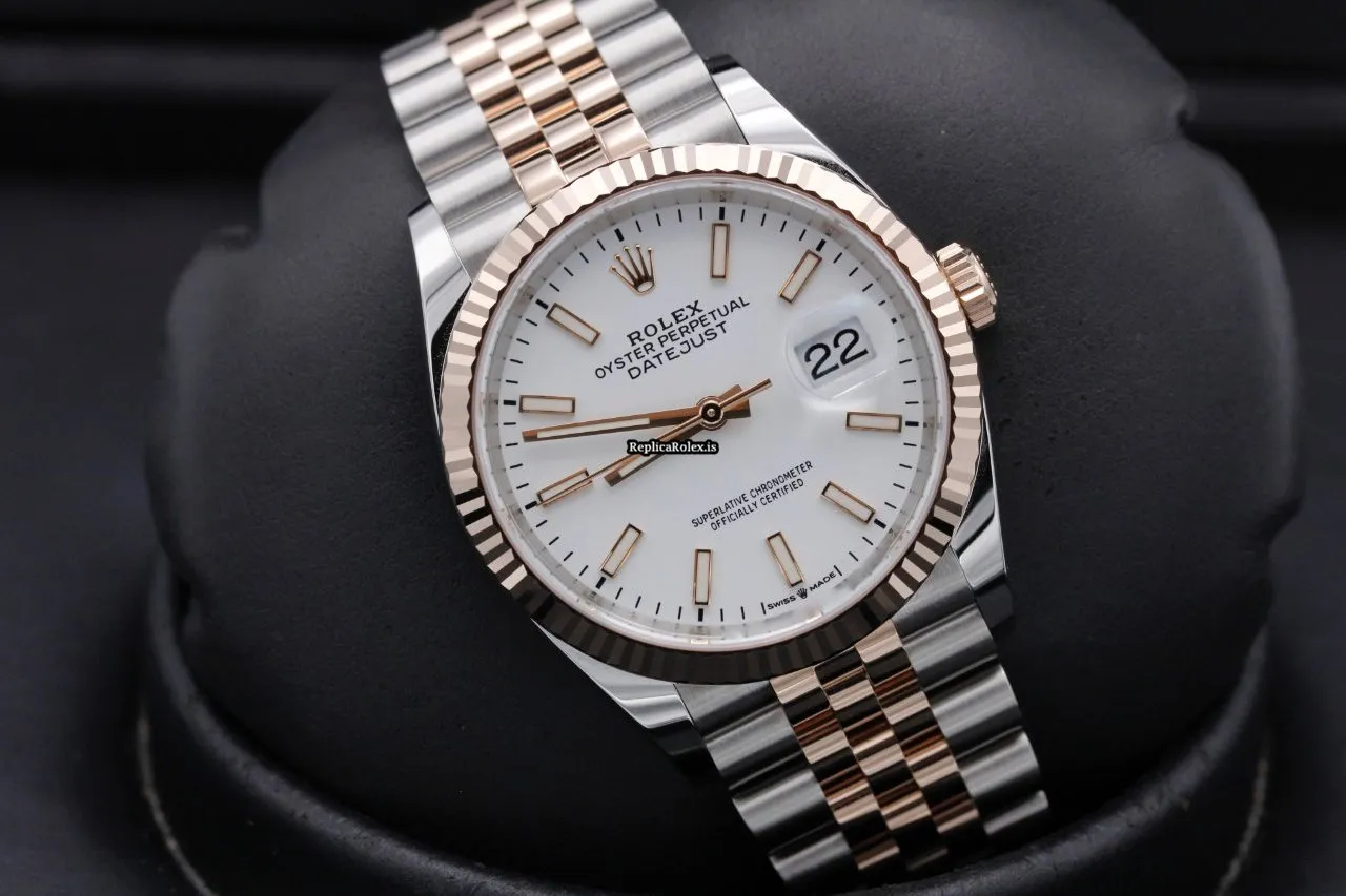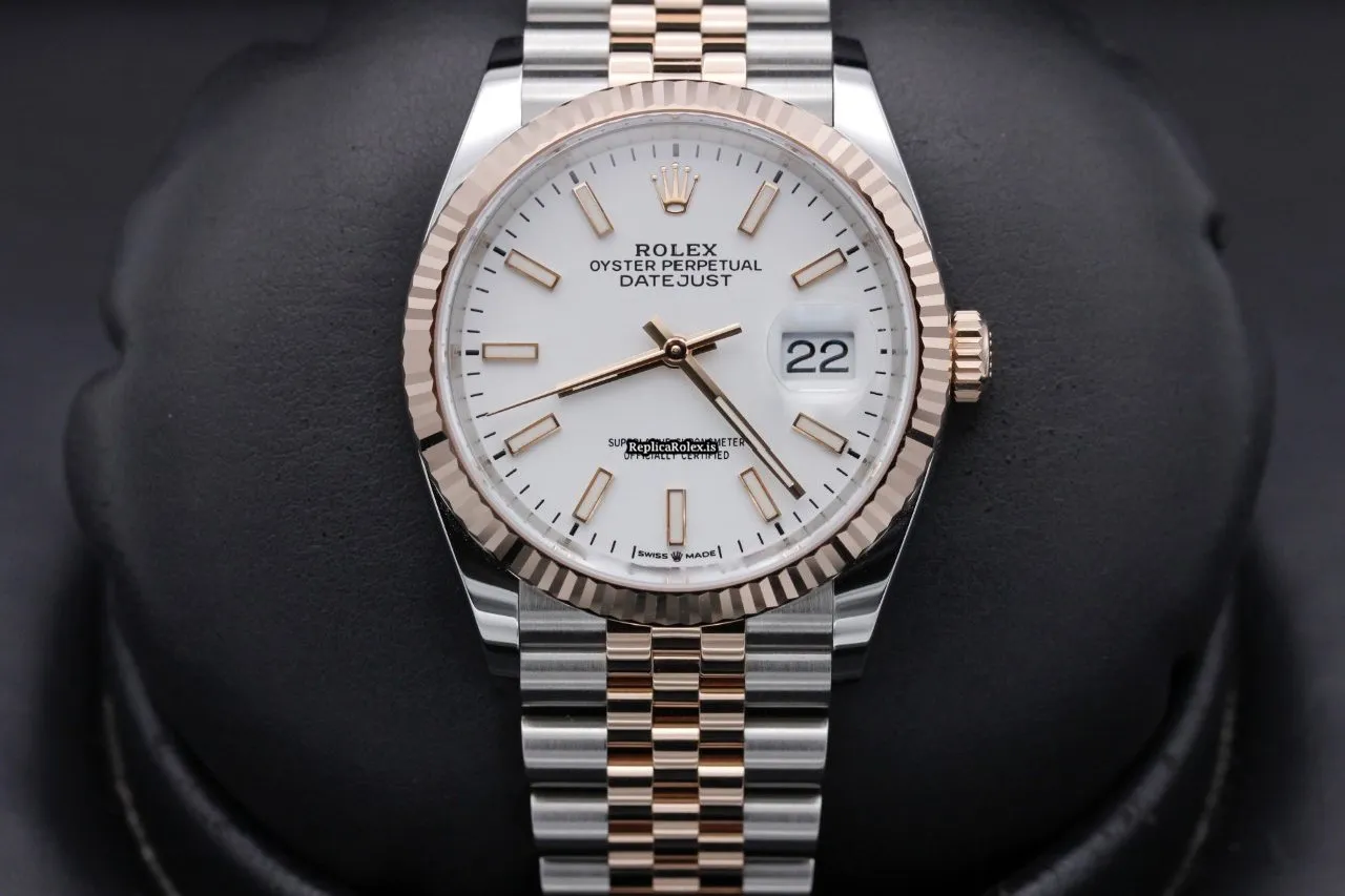 Tags: 126231, 36mm case diameter, gold/steel case material, no numerals, white dial