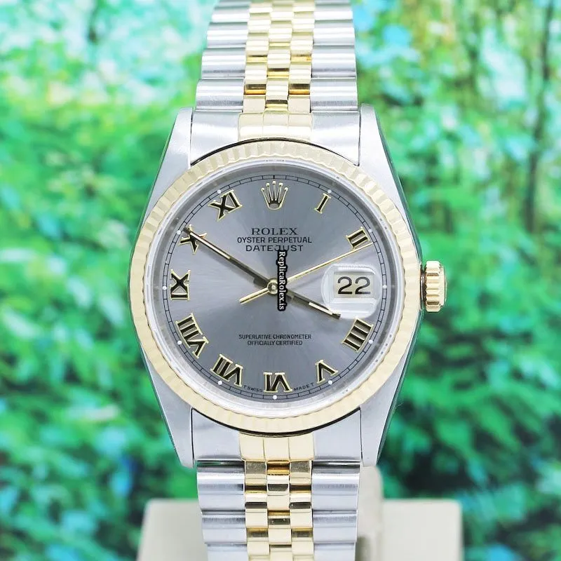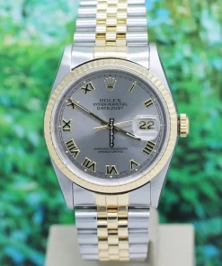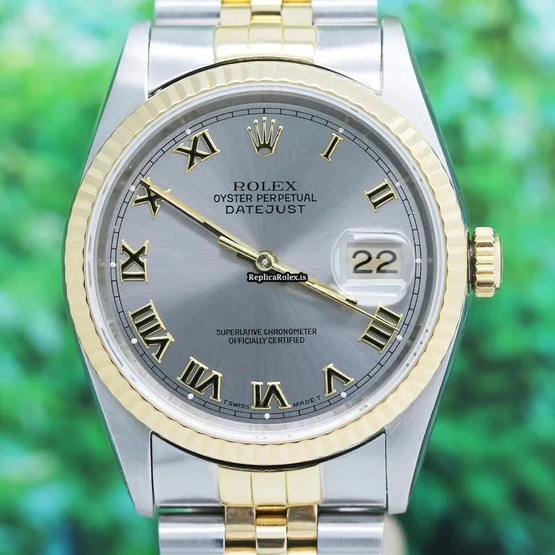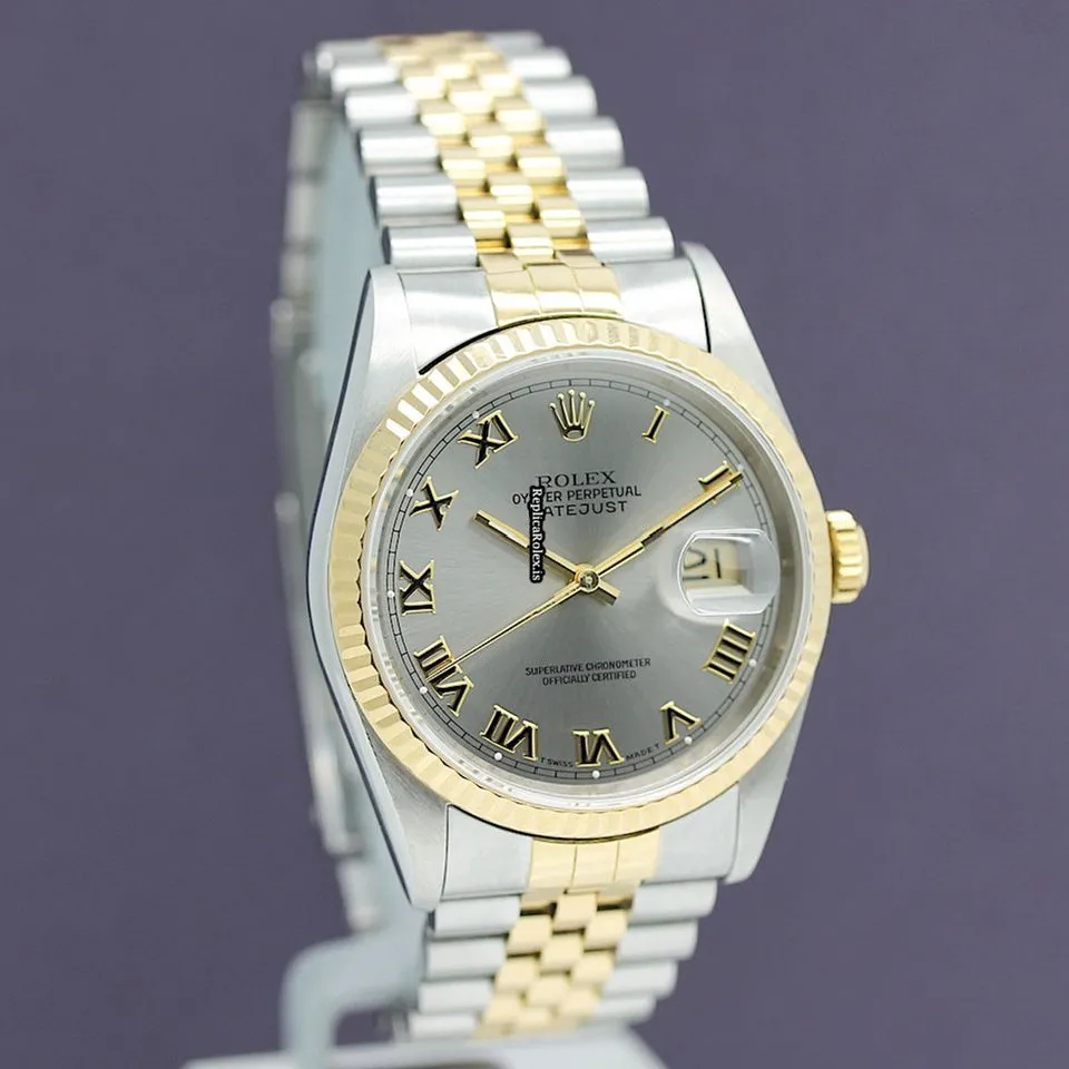 Tags: 13mm, 16233, 1m atm, 31 jewels, 36x42mm case diameter, automatic movement, caliber 3135, fold clasp, gold/steel bracelet color, gold/steel bracelet material, gold/steel case material, grey dial, mens watches, roman numerals, sapphire crystal, steel clasp material, unisex watches, yellow gold bezel material