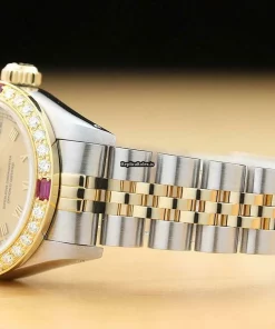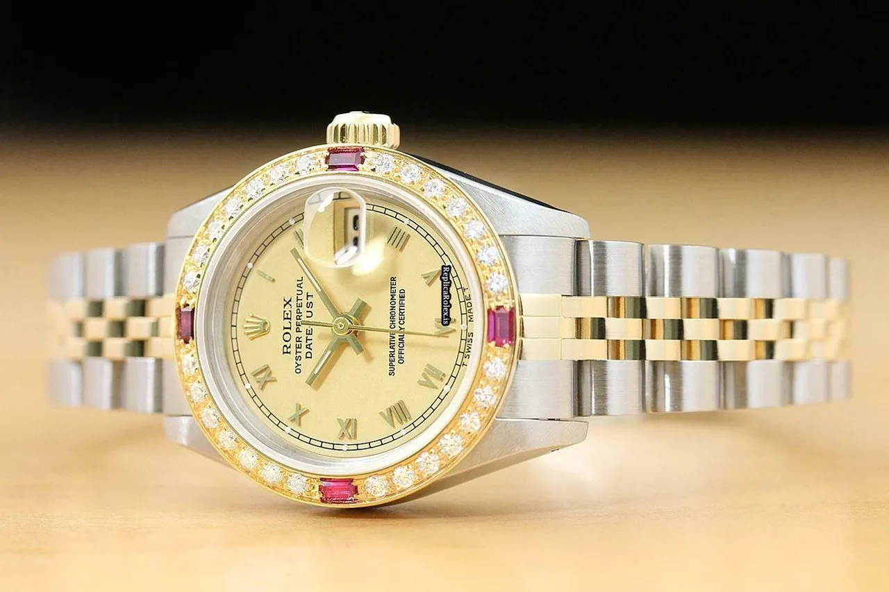 Tags: 13mm lug width, 165mm bracelet length, 26mm case diameter, 29 jewels, 69173, automatic movement, caliber 2135, champagne dial, gold/steel bracelet color, gold/steel bracelet material, roman numerals, sapphire crystal, steel case material, womens watches, yellow gold bezel material