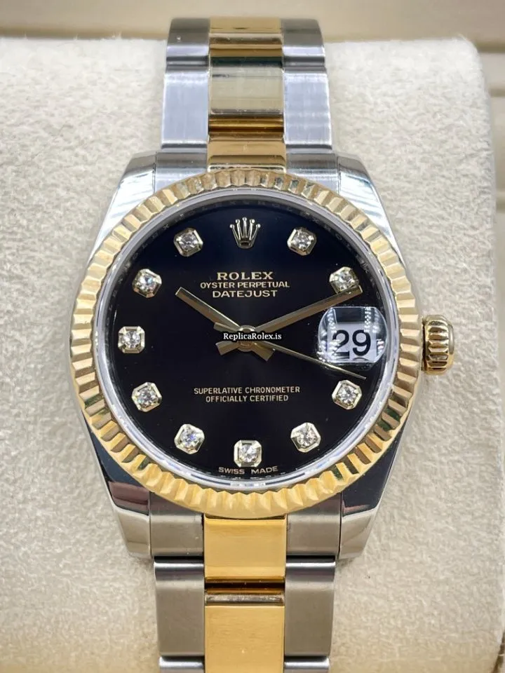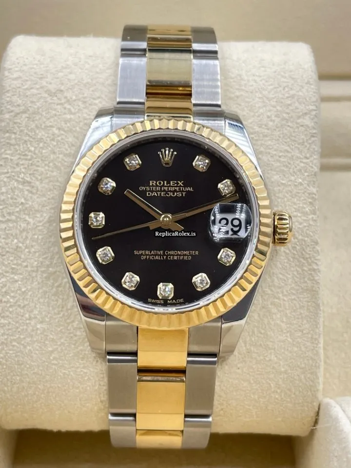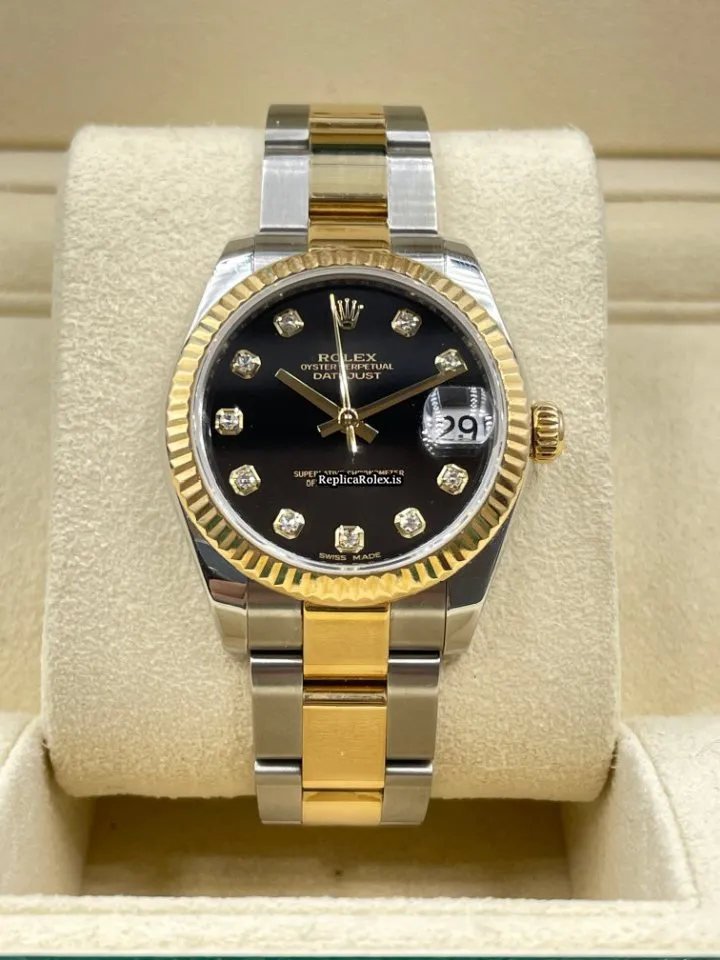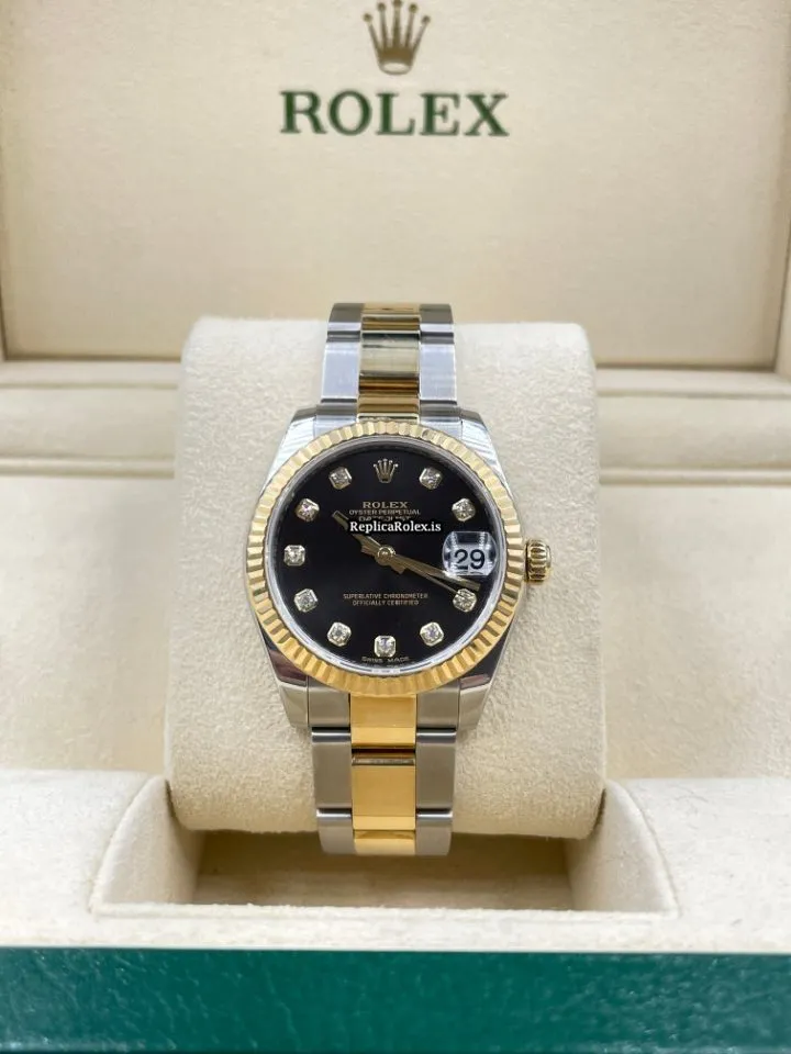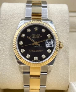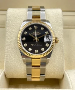 Tags: 10m atm, 178273, 31 jewels, 31mm case diameter, 48h power reserve, automatic movement, black dial, caliber 2235, fold clasp, gold/steel bracelet color, gold/steel bracelet material, gold/steel clasp material, sapphire crystal, steel case material, womens watches, yellow gold bezel material