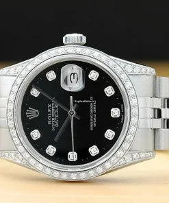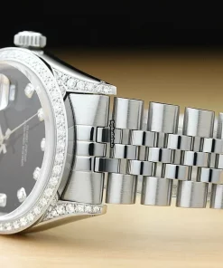 Tags: 16014, 191mm bracelet length, 20mm lug width, 27 jewels, 36mm case diameter, automatic movement, black dial, caliber 3035, mens watches, sapphire crystal, steel bracelet color, steel bracelet material, steel case material, unisex watches, white gold bezel material