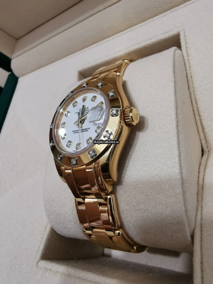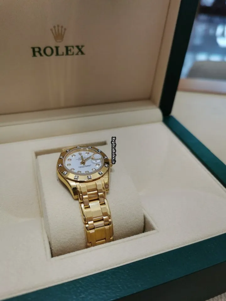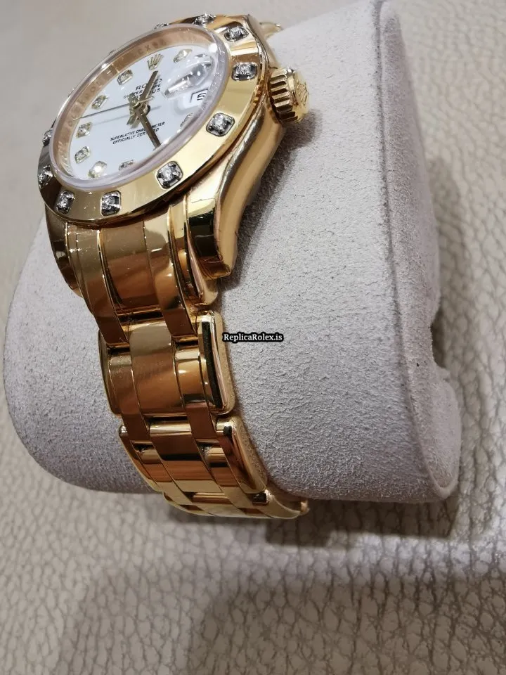Swiss Replica Rolex Lady-datejust Pearlmaster 80318 Caliber 2235 Automatic Movement 29mm Yellow Gold Case Womens Watch