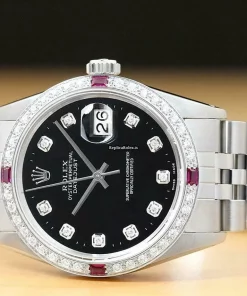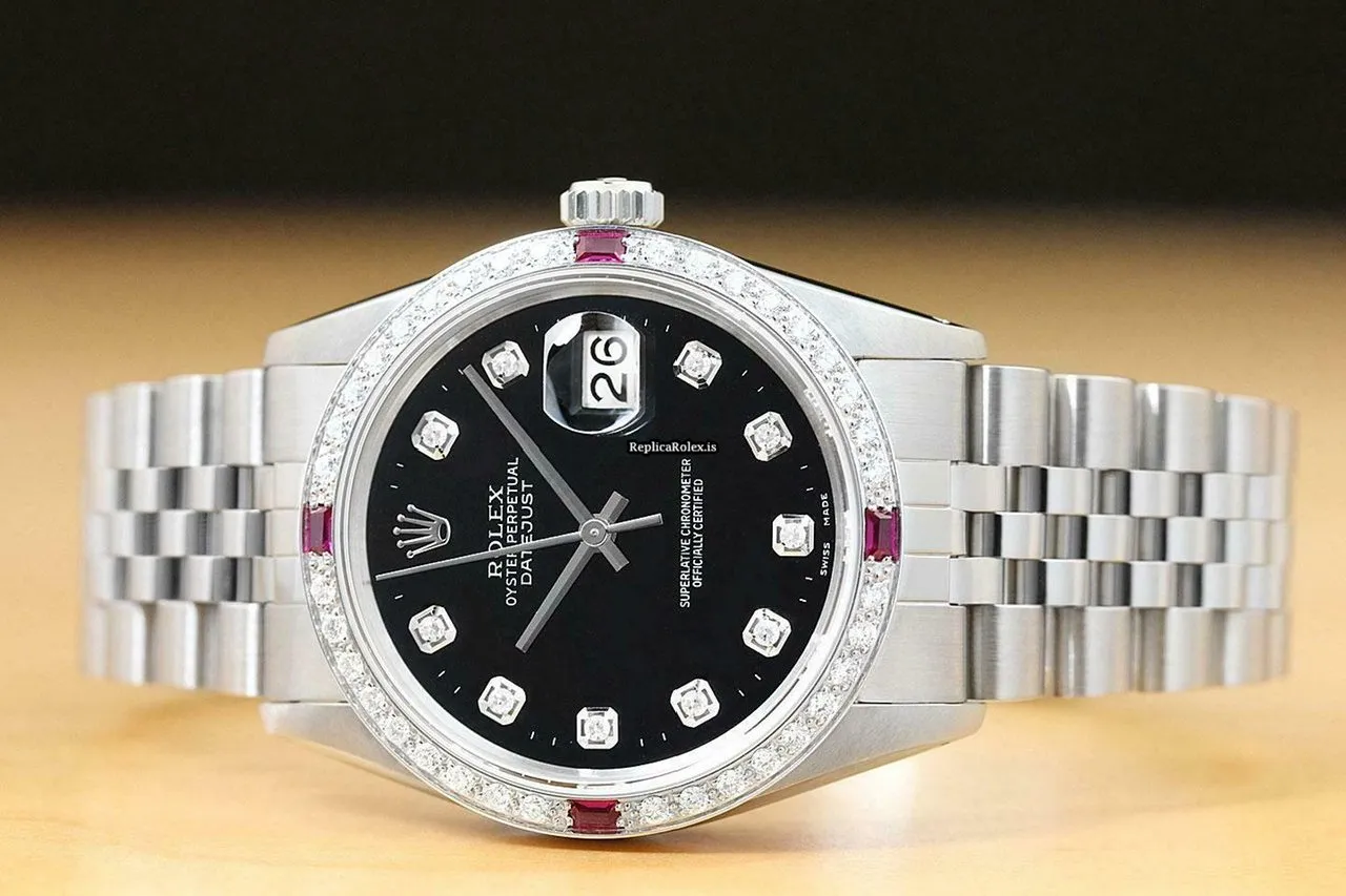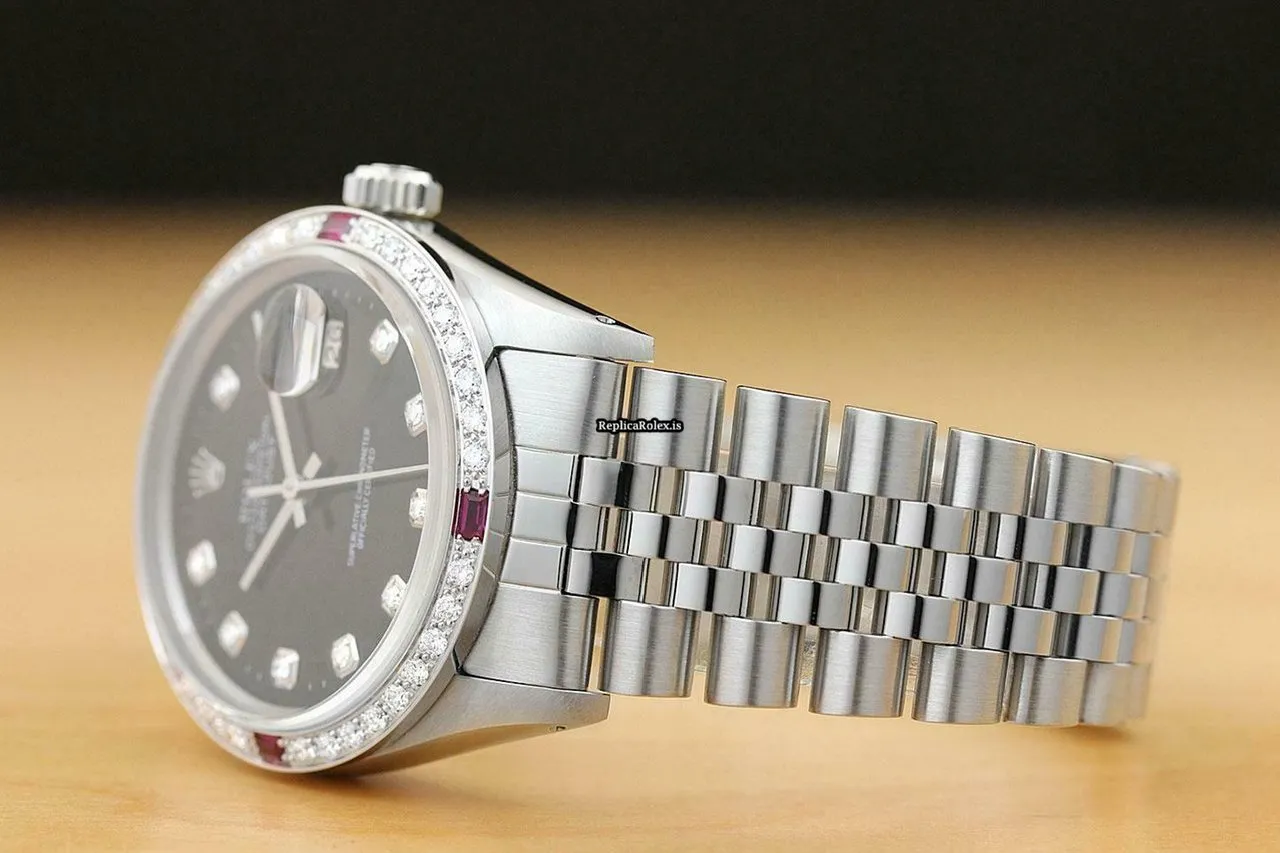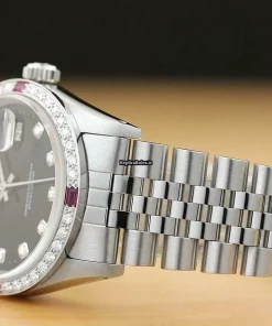 Tags: 16014, 191mm bracelet length, 20mm lug width, 27 jewels, 36mm case diameter, automatic movement, black dial, caliber 3035, mens watches, sapphire crystal, steel bracelet color, steel bracelet material, steel case material, unisex watches, white gold bezel material