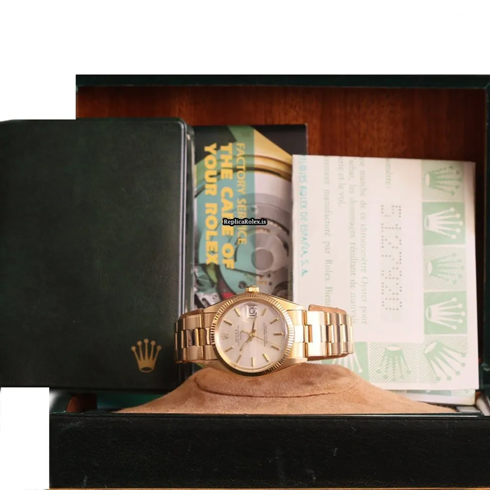 Terrific Replicas Rolex Oyster Perpetual Date 1503 Automatic Movement 34mm Yellow Gold Case Womens Watch