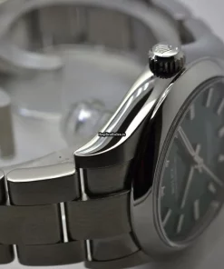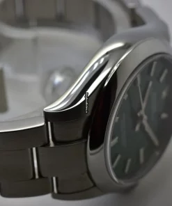 Tags: 10m atm, 10mm, 124200, 31mm case diameter, automatic movement, fold clasp, green dial, mens watches, no numerals, sapphire crystal, steel bracelet color, steel bracelet material, steel case material, steel clasp material, unisex watches