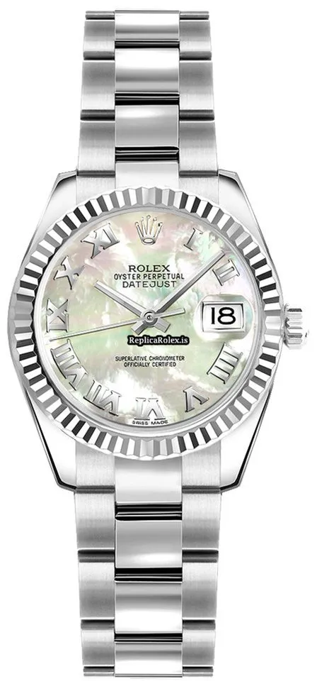 Tags: 10m atm, 179174-, 26mm case diameter, 31 jewels, 48h power reserve, automatic movement, caliber 2235, fold clasp, sapphire crystal, steel bracelet color, steel bracelet material, steel case material, steel clasp material, white dial, white gold bezel material, womens watches