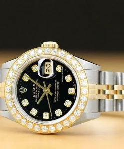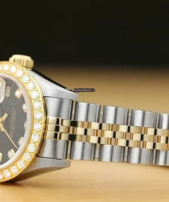 Tags: 13mm lug width, 165mm bracelet length, 26mm case diameter, 29 jewels, 69173, automatic movement, black dial, caliber 2135, gold/steel bracelet color, gold/steel bracelet material, sapphire crystal, steel case material, womens watches, yellow gold bezel material