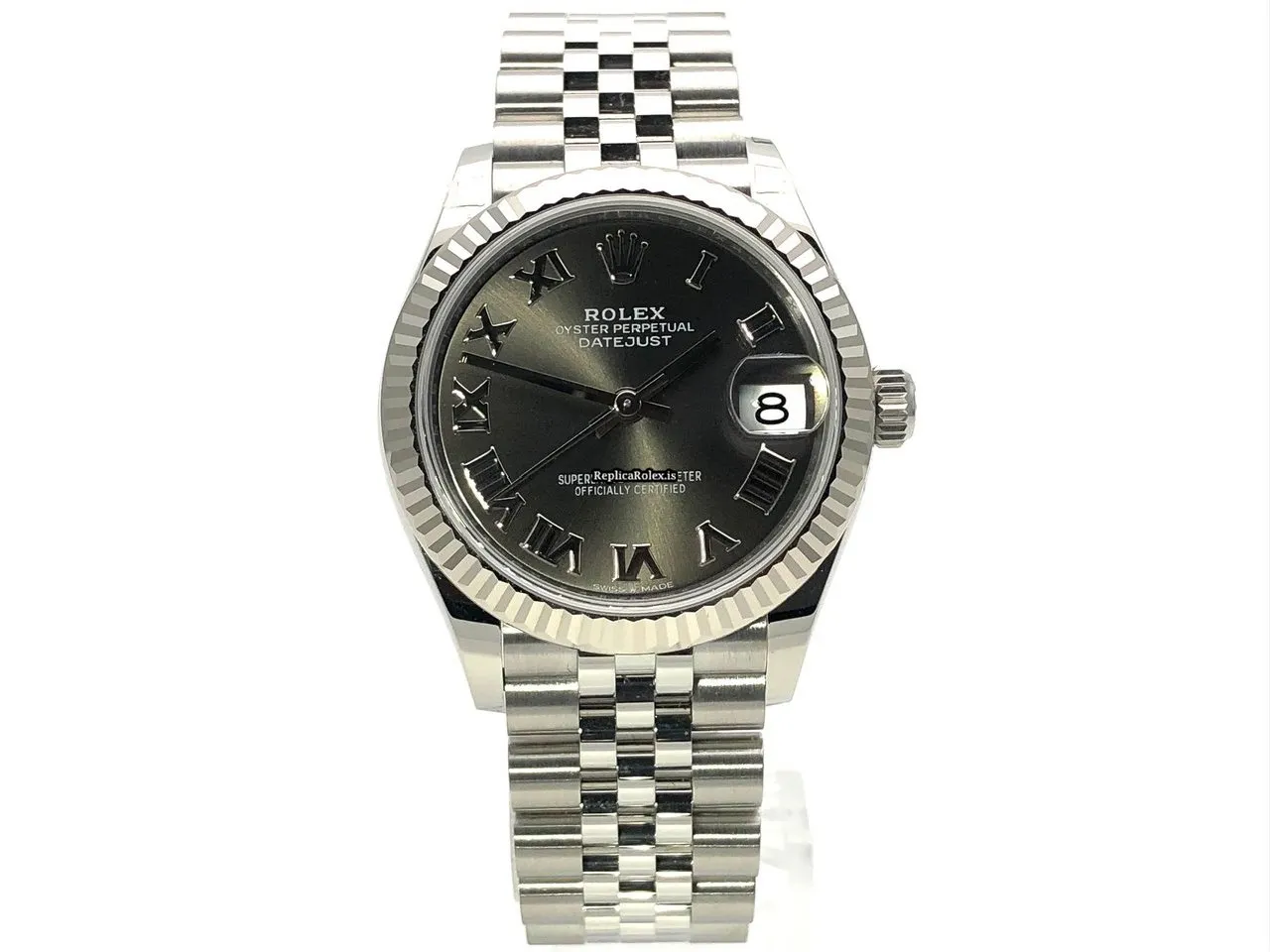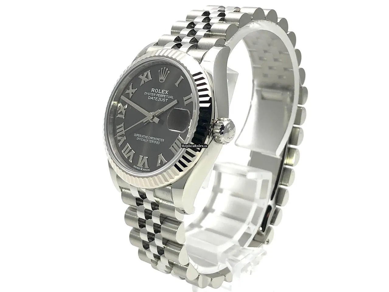 Tags: 10m atm, 10mm, 278274, 31 jewels, 31mm case diameter, 55h power reserve, automatic movement, caliber 2236, fold clasp, grey dial, roman numerals, sapphire crystal, steel bracelet color, steel bracelet material, steel case material, steel clasp material, white gold bezel material, womens watches