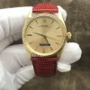 Tags: 1005, 19mm lug width, 26 jewels, 34mm case diameter, 48h power reserve, automatic movement, black bracelet color, buckle clasp, caliber 1570, gold dial, leather bracelet material, mens watches, no numerals, plexiglass crystal, steel clasp material, unisex watches, yellow gold bezel material, yellow gold case material