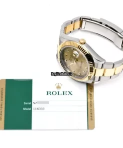 Tags: 10m atm, 116333g, 180mm bracelet length, 41mm case diameter, automatic movement, champagne dial, gold/steel bracelet material, sapphire crystal, steel case material, yellow gold bezel material