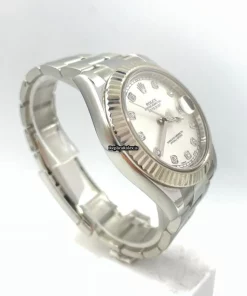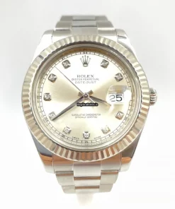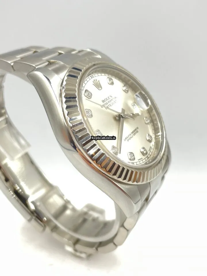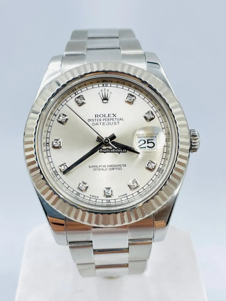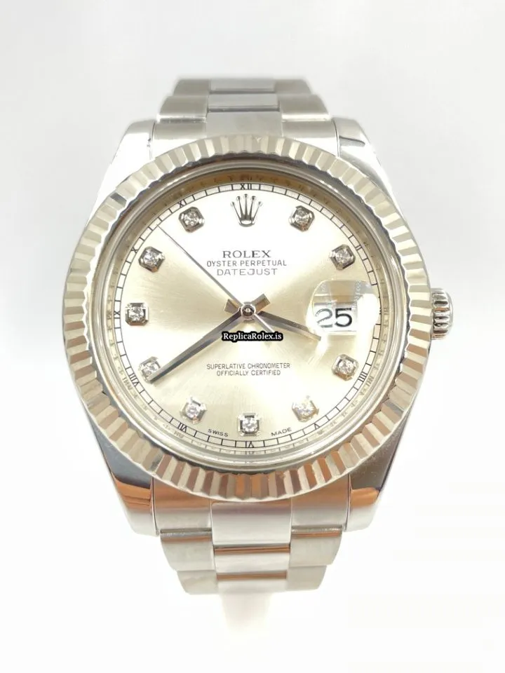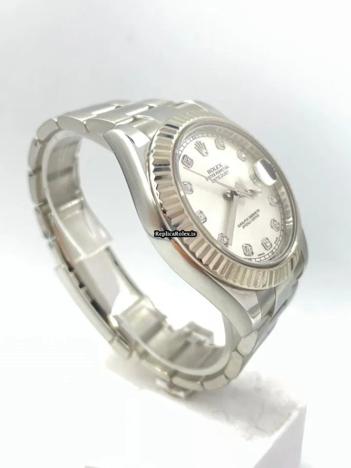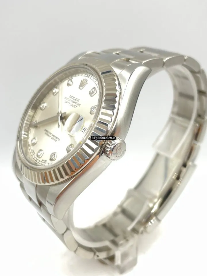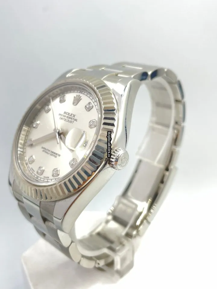 Tags: 10m atm, 116334, 31 jewels, 41mm case diameter, 48h power reserve, automatic movement, caliber 3135, caliber 3136, fold clasp, mens watches, no numerals, sapphire crystal, silver dial, steel bracelet color, steel bracelet material, steel case material, steel clasp material, unisex watches, white gold bezel material