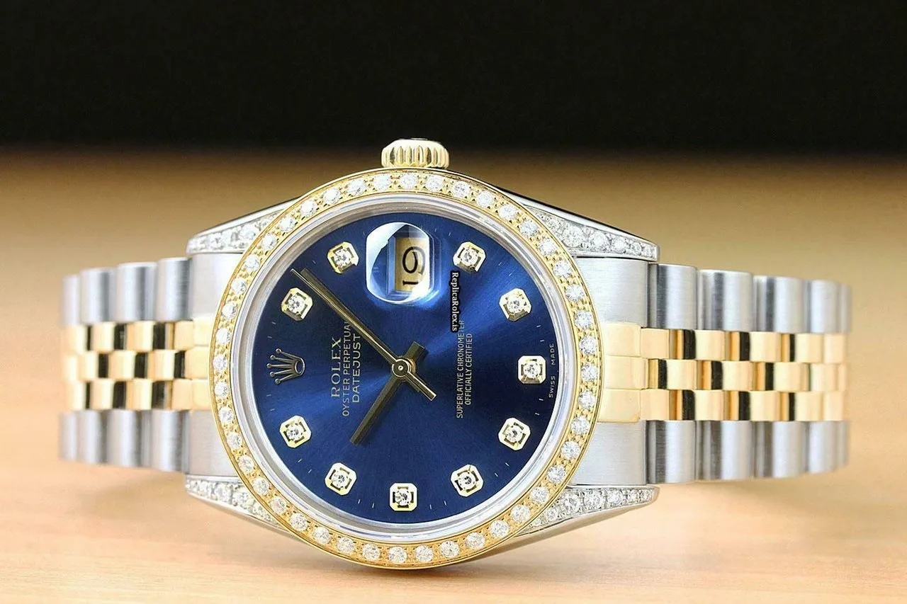 Tags: 16013, 191mm bracelet length, 20mm lug width, 27 jewels, 36mm case diameter, automatic movement, blue dial, caliber 3035, gold/steel bracelet color, gold/steel bracelet material, mens watches, sapphire crystal, steel case material, unisex watches, yellow gold bezel material