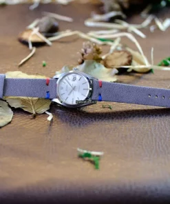 Tags: 10m atm, 17 jewels, 34x40mm case diameter, 40h power reserve, 6694, caliber 1225, manual winding movement, mens watches, no numerals, plexiglass crystal, silver dial, steel bezel material, steel bracelet color, steel case material, steel clasp material, textile bracelet material, unisex watches