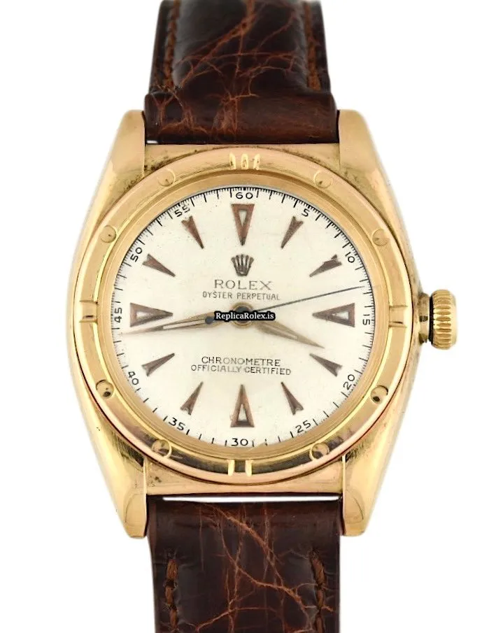 Wholesale Replica Rolex Bubble Back 3372 Caliber 630 Automatic Movement 32mm Rose Gold Case Mens/unisex Watch