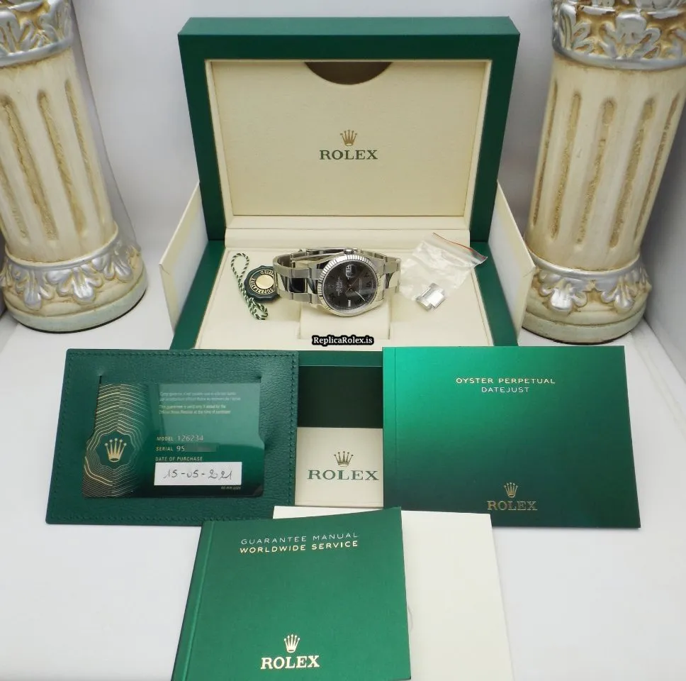 Tags: 10m atm, 126234, 31 jewels, 36mm case diameter, 70h power reserve, automatic movement, caliber 3135, caliber 3235, fold clasp, grey dial, mens watches, no numerals, sapphire crystal, steel bracelet color, steel bracelet material, steel case material, steel clasp material, unisex watches, white gold bezel material