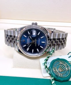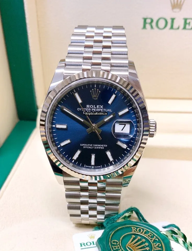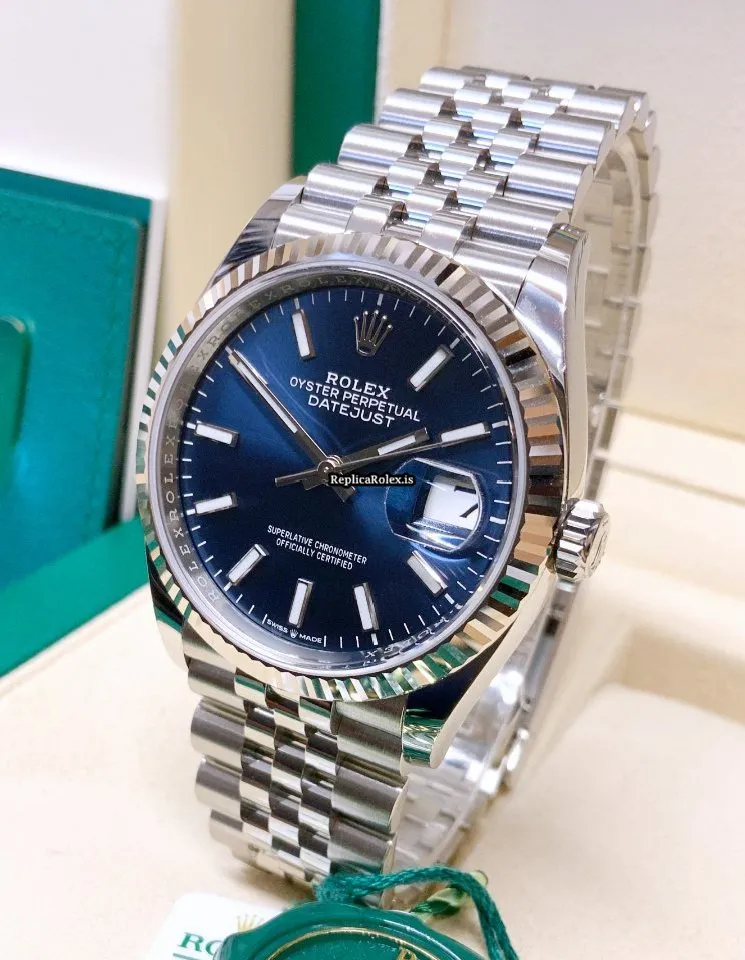 Tags: 10m atm, 126234, 31 jewels, 36mm case diameter, 70h power reserve, automatic movement, blue dial, caliber 3135, caliber 3235, fold clasp, mens watches, no numerals, sapphire crystal, steel bracelet color, steel bracelet material, steel case material, steel clasp material, unisex watches, white gold bezel material