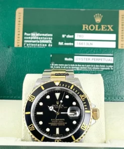 Tags: 16613, 30m atm, 31 jewels, 40mm case diameter, 48h power reserve, automatic movement, black dial, caliber 3135, fold clasp, gold/steel bracelet color, gold/steel bracelet material, mens watches, no numerals, sapphire crystal, steel case material, unisex watches, yellow gold bezel material