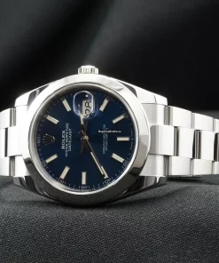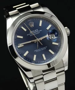 Tags: 10m atm, 126300, 31 jewels, 41x48mm case diameter, 70h power reserve, automatic movement, blue dial, caliber 3135, caliber 3235, fold clasp, mens watches, no numerals, sapphire crystal, steel bezel material, steel bracelet color, steel bracelet material, steel case material, steel clasp material, unisex watches