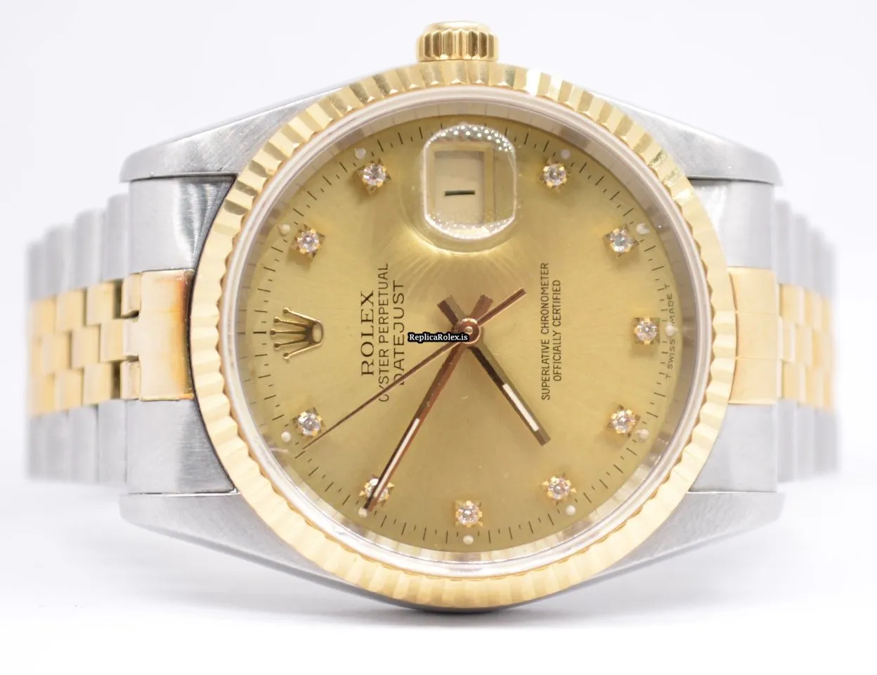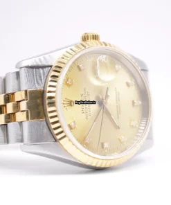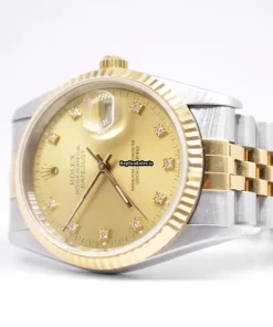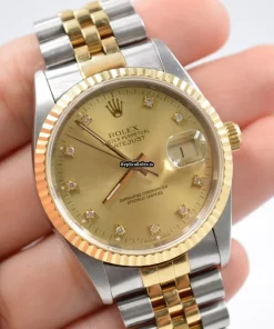 Tags: 16233, 36mm case diameter, automatic movement, caliber 3135, champagne dial, fold clasp, gold/steel bracelet color, mens watches, sapphire crystal, steel case material, steel clasp material, unisex watches, yellow gold bezel material, yellow gold bracelet material